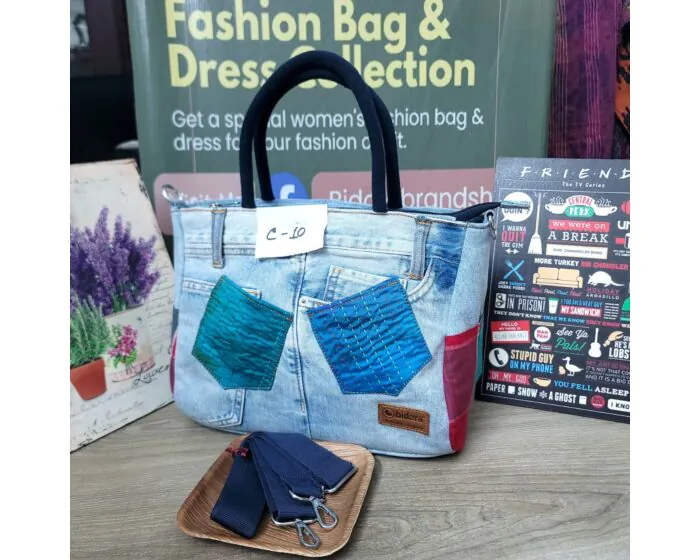 - Material: Made from repurposed denim, giving it a trendy, sustainable appeal.