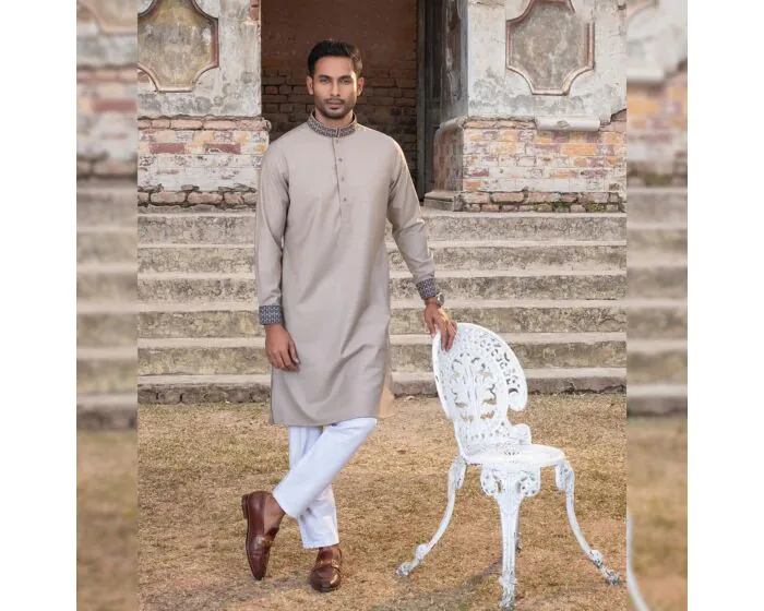 The Imperial Tan Brown Panjabi offers an ideal blend of comfort and style, making it perfect for festive occasions or casual outings. The elegant tan color paired with delicate embroidery elevates its overall look, while the soft fabric ensures lasting comfort. This Panjabi is designed to be both practical and fashionable for all seasons.