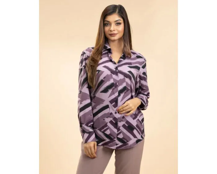 The soft mauve color adds a touch of elegance, while the bold brushstroke print adds a creative edge. This shirt is ideal for fashion-forward individuals who enjoy expressing their style through unique and eye-catching designs. It's perfect for those who want to stand out in a crowd without being too loud, and its comfortable fabric ensures that you’ll look and feel great all day.