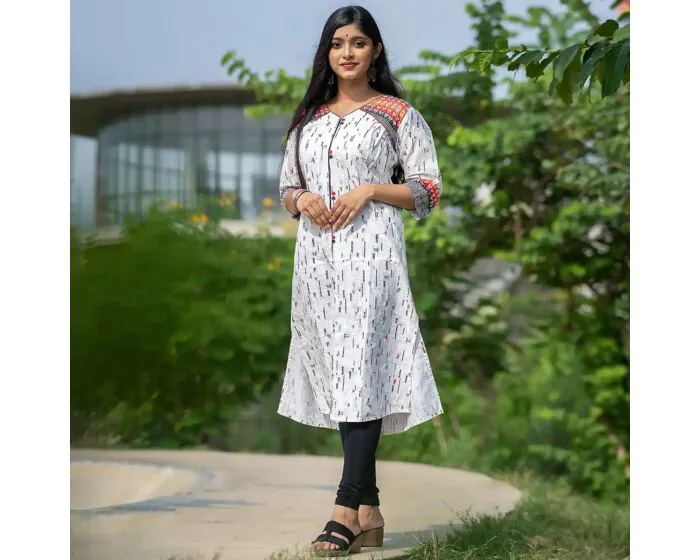 The Urban Grace White Printed Kamiz is a fusion of modern and ethnic styles, making it a versatile wardrobe staple. Featuring calligraphy-inspired prints in a structured yet elegant silhouette, this kamiz offers both sophistication and comfort. The contrasting patchwork on the shoulders and cuffs adds a touch of vibrancy, making it perfect for casual outings, workdays, or festive casual wear. Whether styled with heels or ethnic flats, this kamiz ensures a chic and confident look for any occasion.